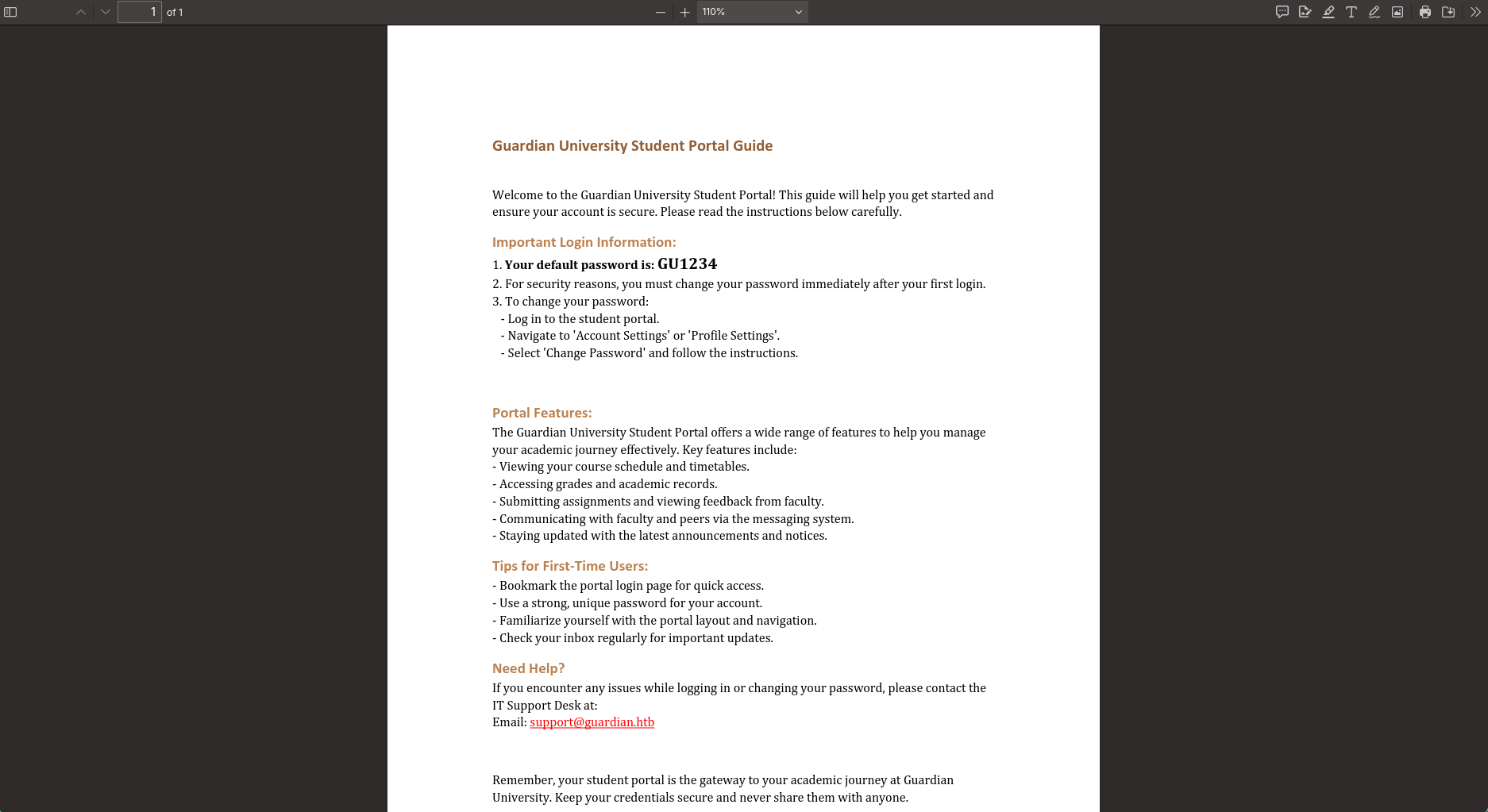 the link took me to a PDF saying that the default password is GU1234