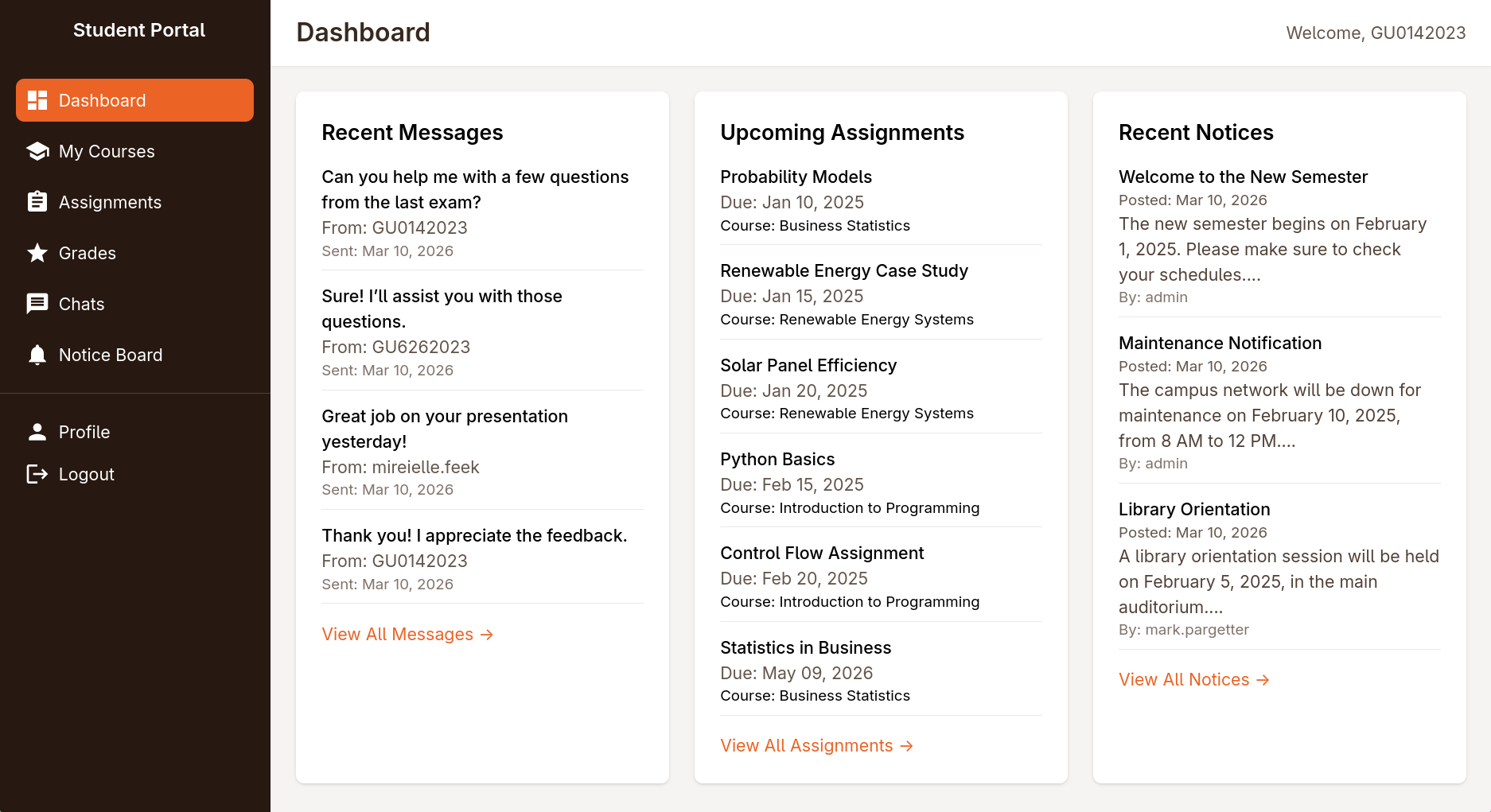 I tried that password with the users I found earlier in the etudent testimonials section and the combination GU0142023:GU1234 worked and I was able to access the student portal dashboard